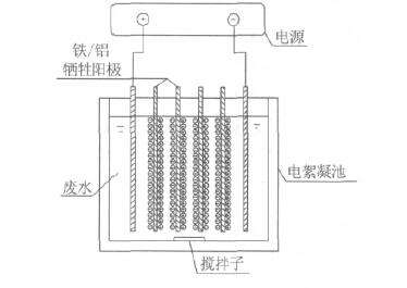 可溶性陽極例如鐵、鋁等陽極,在電源作用下,陽極失去電子后,形成金屬陽離子Fe2+、Al3+,與溶液中的OH-成金屬氫氧化物膠體絮凝劑,吸附能力極強,將廢水中的污染物質吸附共沉而去除。