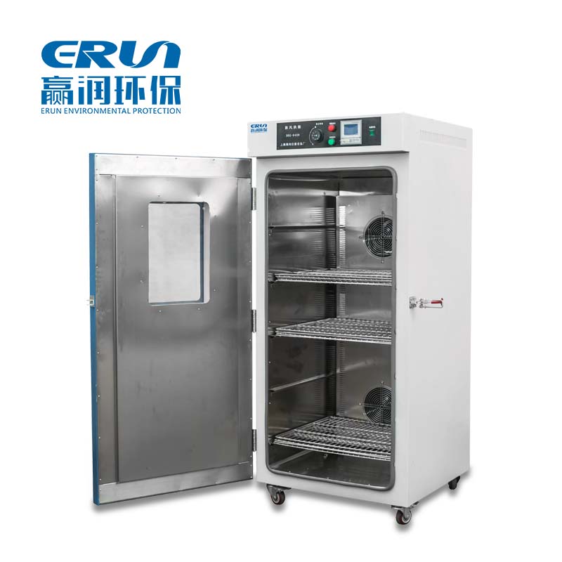 贏潤環保研發、生產的電熱鼓風恒溫干燥箱ERUN-GGX系列具有超溫報警,過熱保護,時間設置,雙目數字顯示,微電腦溫度控制系統,控溫精確可靠,具有跟蹤報警功能攪拌式熱風循環,熱損失小,鼓風,加熱可獨立操作。